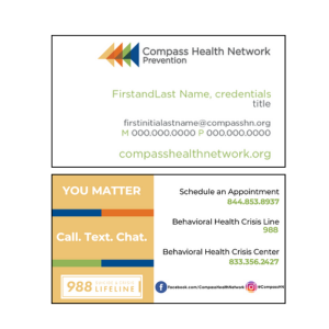 Previous Product Next Product CHN Crisis Hotline Card $30.00 – $60.00Price range: $30.00 through $60.00 Quantity Choose an option5001000Clear Department ID * Site/Location ID * Choose an option100 - Clinton Corporate101 ‐ Clinton ‐ Jerry Osborn Building102 ‐ Truman Lake Women & Children's Center103 ‐ Clinton Community‐Based104 ‐ Clinton ‐ Gaines107 ‐ Clinton ‐ Wesmor110 ‐ Sedalia112 ‐ Sedalia Mobile SUD Unit120 ‐ Warrensburg ‐ Burkarth122 - Warrensburg - Dental123 ‐ Warrensburg Recovery Center124 - Warrensburg Wellbeing Center130 ‐ Harrisonville135 ‐ Higginsville140 ‐ Belton150 ‐ Odessa155 ‐ Lee's Summit160 ‐ Nevada161 ‐ Gateway (IRTS)162 ‐ Nevada ‐ Austin163 - Nevada - N. Elm170 ‐ El Dorado Springs171 ‐ El Dorado Springs ‐ Cedar Ridge172 ‐ El Dorado Springs ‐ SWMPRC (IRTS)173 - El Dorado Springs180 ‐ Butler ‐ Dakota181 ‐ Butler ‐ Orange200 ‐ Warsaw220 ‐ Raymore Wellbeing Center222 ‐ Raymore ‐ Sunset230 ‐ Windsor Annex240 ‐ Osceola245 ‐ Osceola Community‐Based259 - Jefferson City - Masonic260 ‐ Jefferson City ‐ Stadium261 ‐ Jefferson City ‐ Christy262 ‐ Jefferson City ‐ Dupont263 ‐ Jefferson City ‐ Metro 264 ‐ Dahlia House/Shawn House (IRTS)266 ‐ Amazonas268 ‐ Linn269 ‐ Jefferson City ‐ Metro 221 270 ‐ Lebanon275 ‐ Springfield - Admin280 ‐ Camdenton285 ‐ Osage Beach290 ‐ Columbia ‐ Berrywood291 ‐ Columbia ‐ Woodrail292 ‐ Columbia ‐ Worley293 ‐ Columbia ‐ Keene Dental295 ‐ Columbia ‐ Providence296 ‐ Columbia ‐ Broadway Bluffs297 - Columbia - West Blvd. Admin298 ‐ Columbia ‐ East Broadway299 ‐ Columbia ‐ Portland300 ‐ Columbia ‐ Mobile Dental Unit301 ‐ Columbia ‐ Food Bank310 ‐ Eldon325 ‐ Saint Robert330 ‐ Rolla ‐ Main Building331 ‐ Rolla ‐ Residential332 ‐ Rolla ‐ Navig8333 ‐ Rolla Children's Center334 ‐ Rolla ‐ Diamond Apartments335 ‐ Rolla ‐ Phelps Hospital340 ‐ Owensville350 ‐ Salem360 - Sullivan365 - Cuba370 - Marceline380 - Moberly385 - Salisbury400 - Fulton410 - Cedar Recovery Center500 - Wentzville501 - Wentzville - Annex510 - St. Charles - Compass Point511 - Headway Wellbeing Center512 - Choices (St. Charles)514 - St. Charles - Elm515 - St. Charles - New Town516 - St. Charles - Muegge Dental517 - Weldon Spring519 - St. Charles - Blackhurst Elem520 - Warrenton522 - Warrenton Community - Based530 - Union - Suite 102, 111, 115531 - Union - Community - Based532 - Union - CAC533 - Union BHCC540 - Pathways (IRTS)550 - Washington565 - Troy575 - St. Peters/Mexico Court576- 8075 Mexico Road576 B - 8097 Mexico Rd (JCC)590 - Adapt - Hamption591 - Adapt - Chouteau593 - Adapt - Lamplighter600 - Royal Oaks Hospital800 - Arnold Municipal802 - Arnold - Dental807 - Arnold - Richardson Xing810 - Festus811 - Festus - Annex813 - Festus - CAC814 - Festus School Campus815 - Festus Wellbeing Center817 - Festus - Truman820 - High Ridge - Gravois821 - High Ridge - Emerson822 - House Springs Valley823 - High Ridge - West824 - High Ridge - Gravois830 - Hillsboro - Hickory831 - Hillsboro - Drug Court840 - Herculaneum - Dunklin841 - Farmington - CAC843 - A Safe Place904 - SAMHSA GLS Grant975 - Compass - All Agency Product total Options total Grand total CHN Crisis Hotline Card quantity Add to cart SKU: chn-crisis-hotline-cards Category: Business Cards Additional information Additional information Quantity 500, 1000 Related products Quick View Quick View Business Cards988 Business Cards $30.00 – $60.00Price range: $30.00 through $60.00 This product has multiple variants. The options may be chosen on the product page Quick View Quick View Business CardsBilling Cards $30.00 – $60.00Price range: $30.00 through $60.00 This product has multiple variants. The options may be chosen on the product page Quick View Quick View Business CardsPharmacy Information Cards $22.00 – $44.00Price range: $22.00 through $44.00 This product has multiple variants. The options may be chosen on the product page